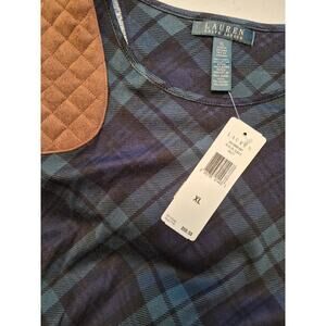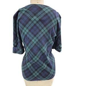 90s NWT LRL Lauren Ralph Lauren Green Tartan Plaid Top Quilted Shoulder Sz XL