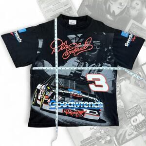Black Vintage 90’s Nascar Dale Earnhardt All Over Print Graphic Tee
