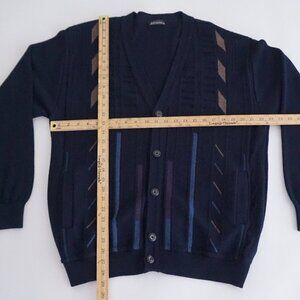 '90s Navy 3D Coogi Biggie Cosby Fine Knit 50% Wool button Up Cardigan Sweater L