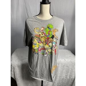 90s Nickelodeon mens L gray t shirt short sleeved Rug Rats REN Stimpy NWT