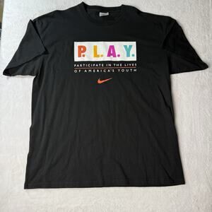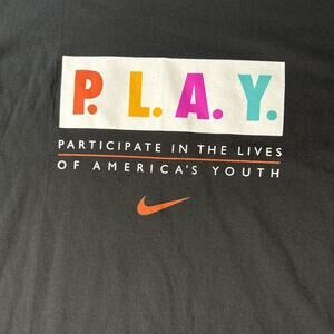 90s Nike PLAY Vtg Black T-Shirt Orange Swoosh XL America's Youth Colorful Logo