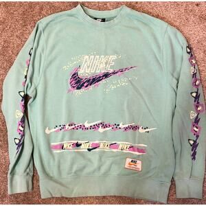 90s Nike Stories Vintage Black Tag Sweatshirt Swoosh Double Sided Green Medium