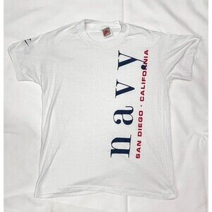 90s Nike X Navy White Single Stitch Graphic T Shirt Sz M