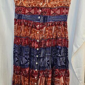 90's No Boundaries Button Up Teacher Dress, Size Medium, Red/blue/orange