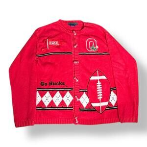 90s Ohio State Buckeyes Collegiate Football Button Knit Cardigan Sweater Medium