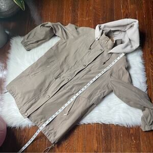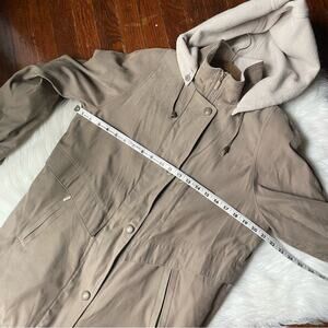 90s Oversized Vintage Tan Cozy Jacket Fleece Lined with removable hood. Brand is Outbrook size small. Shell is 85% polyester 15% nylon lining 100% polyester Please see photos for condition details. Please see measurement photos for best fit. Get the best deals when you bundle items together. I’ll respond to any offer you send me. BRCL-2404