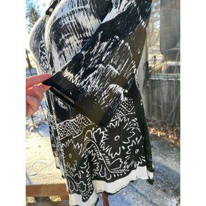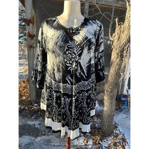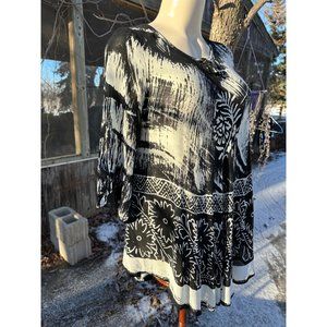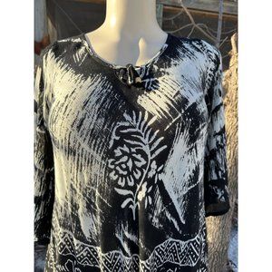 90s Papa Vancouver Abstract Print Tunic Top 100% Rayon India Gauze 3/4 Sleeve