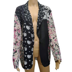 90s Patchwork Floral Striped Light Weight Box Cut Blazer Fold Down Collar Sz Sm