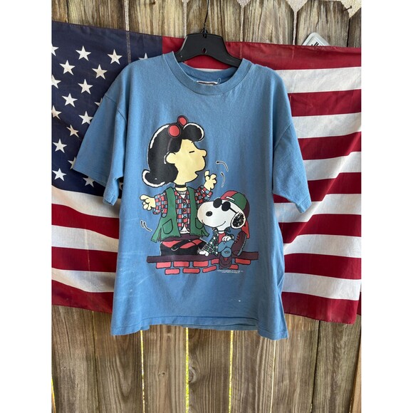 90s Peanuts Snoopy and Lucy graphic tee fits L-XL by united features syndicate.
