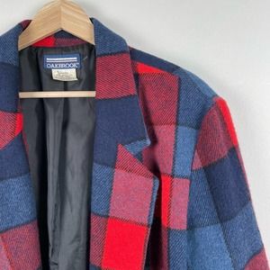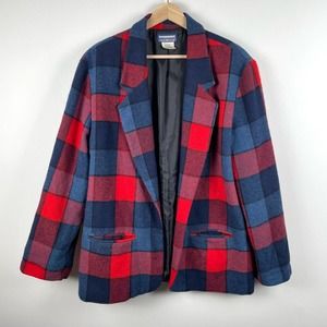 90s Plaid Wool Blazer Shacket Shirt Jacket Coat Blue Red Academia Preppy Size L
