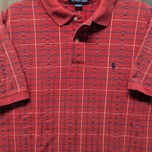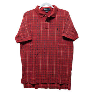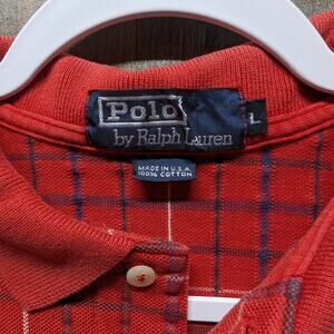 Description: Vintage 90s Polo Ralph Lauren Checkered Polo Shirt, red and blue, small embroidered logo on chest, button collar, casual dress shirt