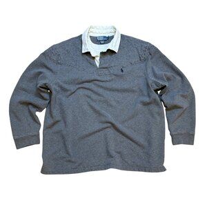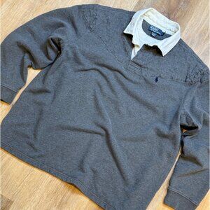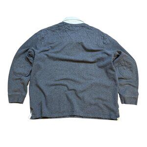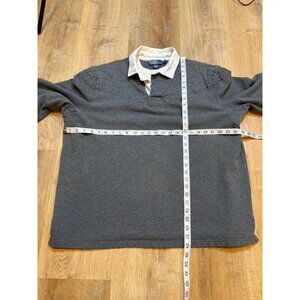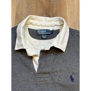 90s Polo Ralph Lauren Mens Rugby Shirt Elbow Patches Quilted Gray & White Pullov