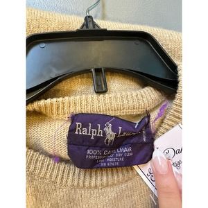 Super chic tan knit purple label Ralph Lauren tank top! From the 90s. Great staple for your closet! Made of 100% camel hair. Has a fitted cut.