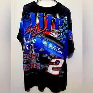 90’s Rare Nascar Rusty Wallace First you see the LITE then you feel the thunder tee shirt miller lite miller time ford 76 Goodyear Taurus nascar Penske racing Bosch Mobil 1