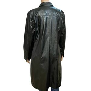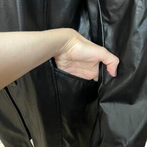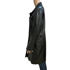 Stylish faux leather mid length jacket. Button down. Has pockets. Great for a minimalist or gothic aesthetic. Straight fit.