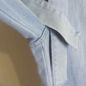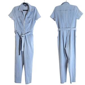 great condition!! Light denim expose zipper, to front chest pockets to side pockets. belted waist.