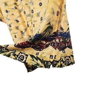 90s Ron Chereskin Hawaiian Shirt Beach Woody Surfer Pattern Rayon Mens M Yellow