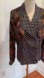 This double breasted silk black and white polka dot and multi-color brown tone jungle safari vibe vintage blouse from the 1990's. The interesting design of the oversized shirt has very start of a minimalist style with a broad collar and lapel then a surprising overlay of a vest like safari fabric in the front and back that extends through the sleeves. The maker label is missing. Made in Korea. EUC in a size 4. Since the blouse is oversized it will fit a larger size. Please check the measurements to ensure fit.