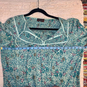 VINTAGE FRENCH DRESS IN SILKY COTTON - GORGEOUS TURQUOISE GREEN COLOR IN A BLOCK PRINT. HIPPIE BOHO STYLE - VERY 70's STYLE BUT FROM THE 90's. FRENCH SIZE 38. MEASUREMENTS IN PHOTOS (22" UNDERARM TO UNDERARM, 40" LONG)