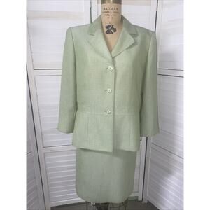90s SUIT STUDIO 2pc Green Polyester SKIRT SUIT Sz 16 Pencil Lined Single Breast