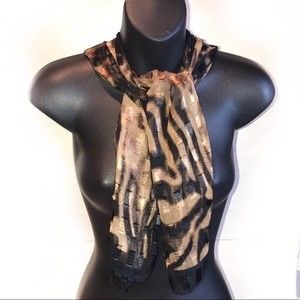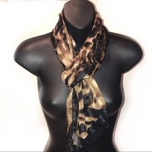 Vintage 90s satin scarf Animal print Polyester Brown Tan gold Beige Excellent condition L 55 “x W 14”