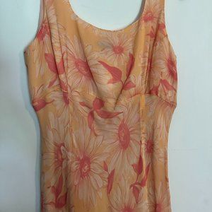 90s Orange floral silk dress