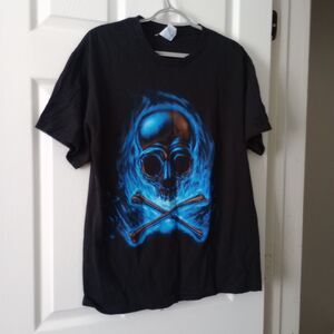 90s Skull And Crossbones Blue Flame Graphic TShirt Size Large Barely Worn EUC