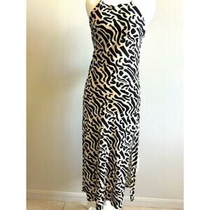 90s Slip Dress MIDI Med Geometric Animal Print Spaghetti Cocktail Party Babydoll