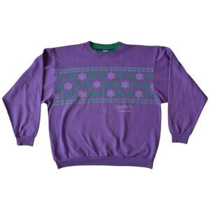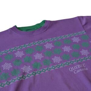 90s Snowflakes Graphic Purple Crewneck Sweatshirt from Quebec Canada - Large