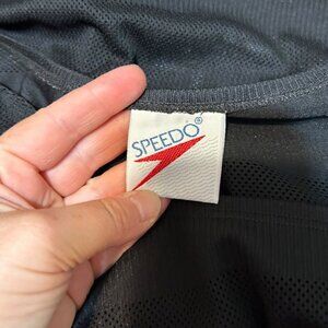 Step back into the 90s with this iconic Speedo mesh striped cover-up dress. This vintage find is a must-have for any fashion-forward individual.