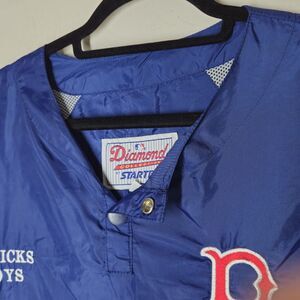 90s Starter Boston Red Sox Pullover XL Diamond Vintage Snap Warmup Jacket Nylon