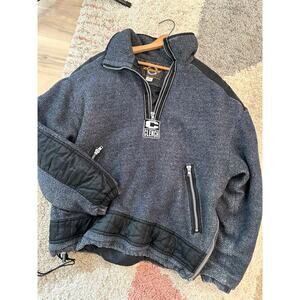 Vintage 90s Streetwear Fleece Bomber Pullover Jacket Blue Size XL