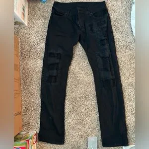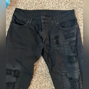 These low rise jeans are in great condition. Check out the texture patches!