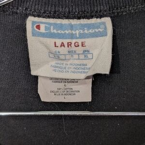 90's Style Champion Black Neon Embroidered Logo T-shirt Unisex Large 100% Cotton
