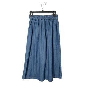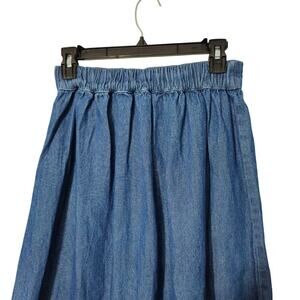 Denim Midi Button Front 100% Cotton Size Small. Elastic Waist. Excellent Condition.