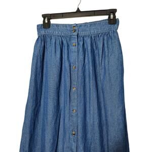 90s Style Denim Midi Button Front 100% Cotton Size Small Elastic Waist
