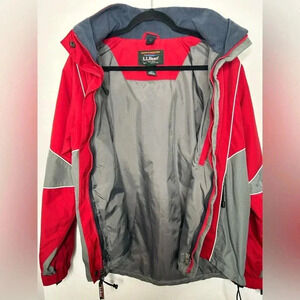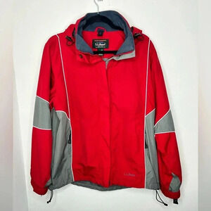 90’s Style L.L. Bean Women's Jacket Rain Coat Hood Red Gray Sz Medium