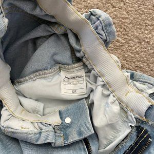 Light colored cuffed denim shorts with elastic waist. Fit like a size 0/2. Have an A-line mom jean look. In great condition, only worn one summer.