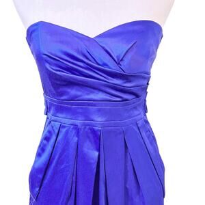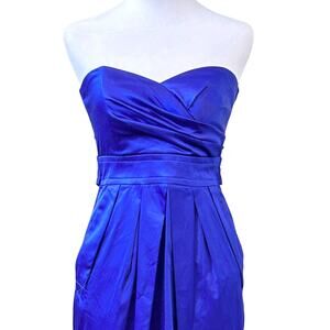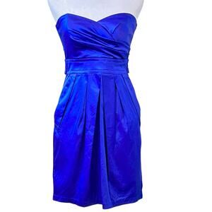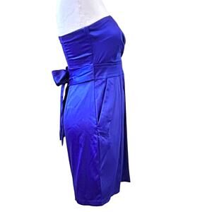 90s Style NWT Blue Mini Strapless Ruched Formal Dress Bow and Pockets Size 5