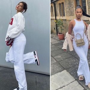 90s Style White Wide Leg Jeans High Waist Raw Hem