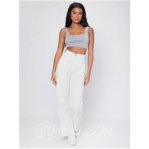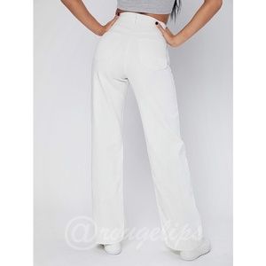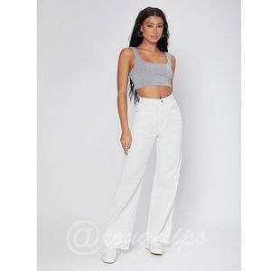90s Style White Wide Leg Jeans High Waist Raw Hem