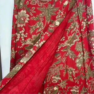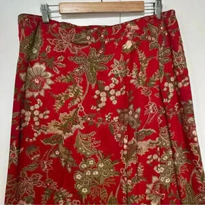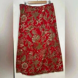90s Talbots midi wrap classic holiday skirt botanical print scarlet red sz 16W