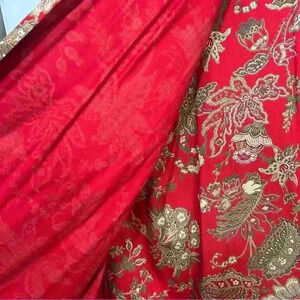 Good preloved condition 90s Talbots midi wrap classic holiday lined skirt botanical print scarlet red size 16W.