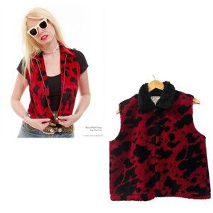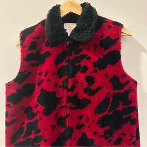 90s Tally-Ho Red Black Cow Print Vest Faux Fur Collar Y2K Retro Medium Petite