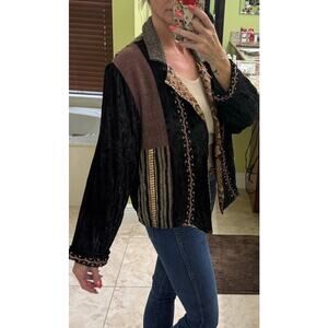 90s Tapestry & velour blazer jacket Neo Nostalgia Vintage patchwork Brown Medium