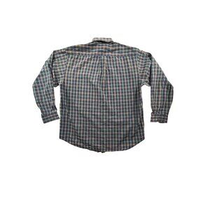90s Tommy Hilfiger Men Medium Navy Green/Red Lion Crest Plaid Button-Down Shirt