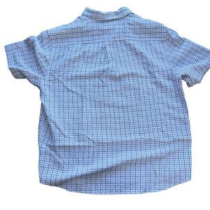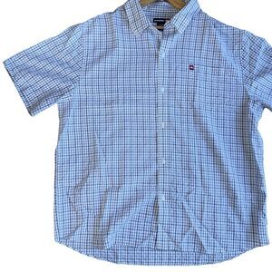 90s Tony Hawk Skater Grunge Shirt Mens XL Baby Blue White Plaid Short Sleeve
