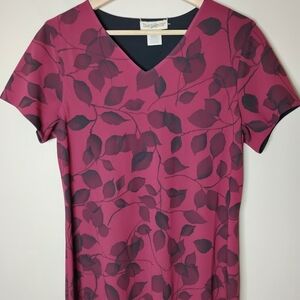 90s Travelsmith Maxi Dress Burgundy Leaf Print Fall Cottagecore Preppy Sz M