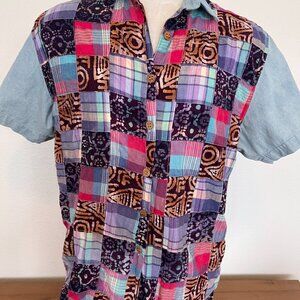 90's Unique Funky Patchwork Shirt - Unisex - Gender Neutral - Size Large