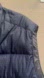 Slant pockets, adjustable cord at bottom for an expert fit. The perfect puffer vest. Navy blue on one side and Gray on the other.